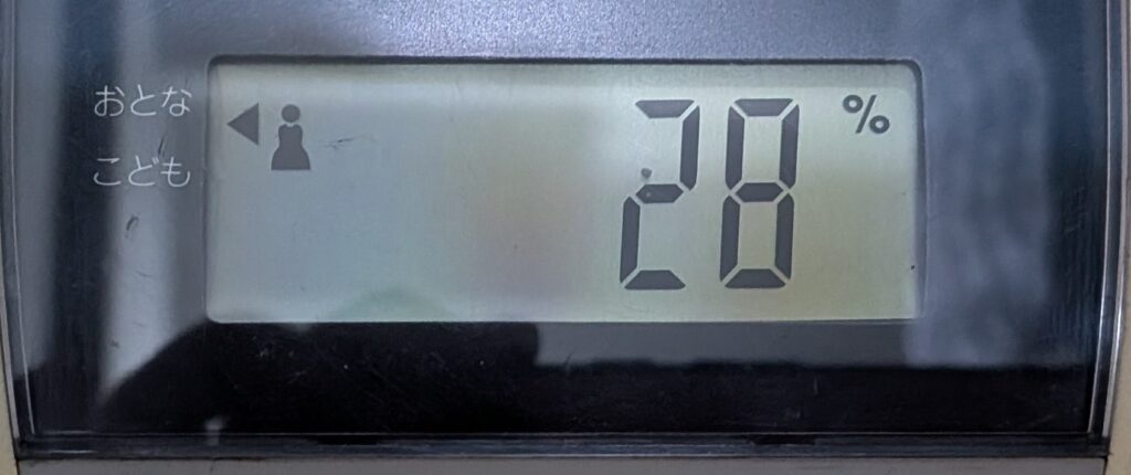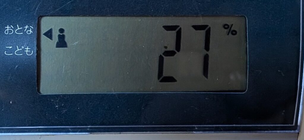 今回、運動を取り入れていないので、体脂肪率は、28%から始まり、現在は27%を維持しています。
