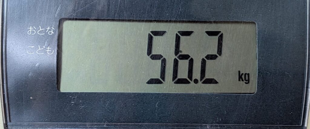 ダイエット開始前56.2㎏だった体重は、ダイエット後52.6㎏まで減りました。その差、3.6㎏の減量に成功です。1カ月で-2㎏を目標としていたので十分な成果です!(^^)!