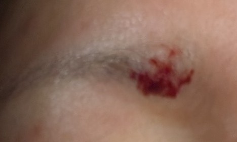 眉毛の中にあった、デキモノも切除しました。5~6年前に突然デキモノが出来て、それ以来眉毛の中に居座ってました。眉毛を描く時、常に邪魔で邪魔で💦こちらも削ってもらったので流血してます。毛があるので、テープは貼らなくてよいとのことでしたが、仕事がお休みの間は貼っておこうと思います。