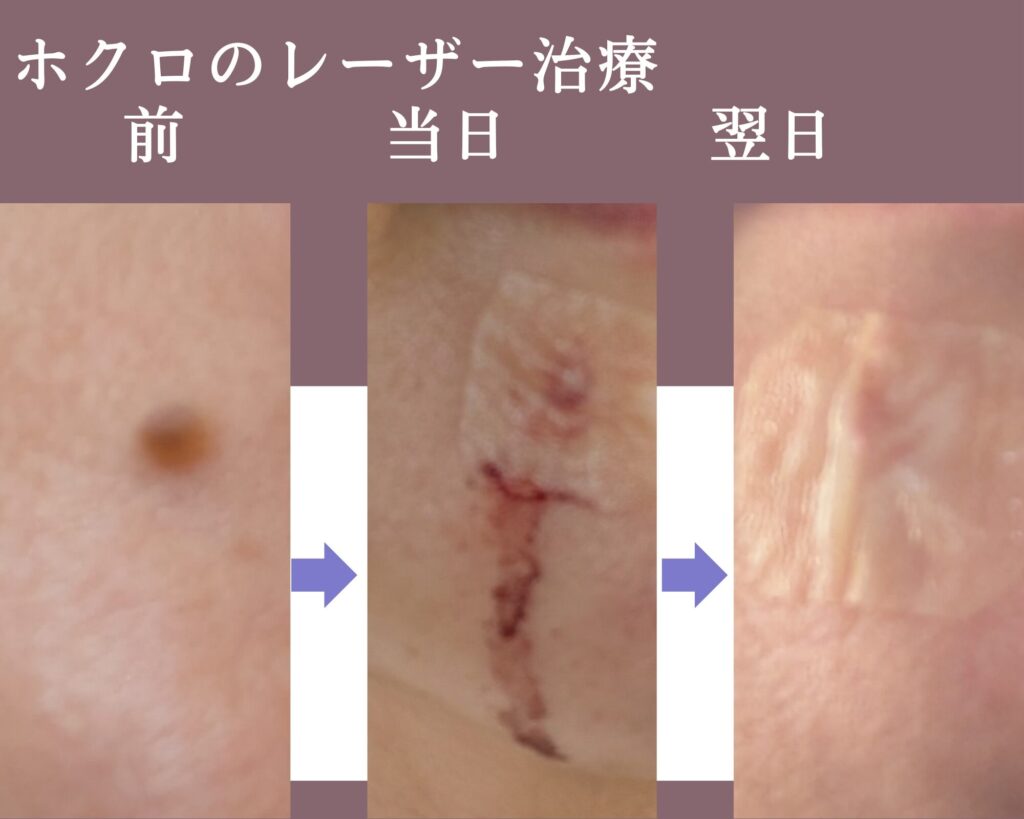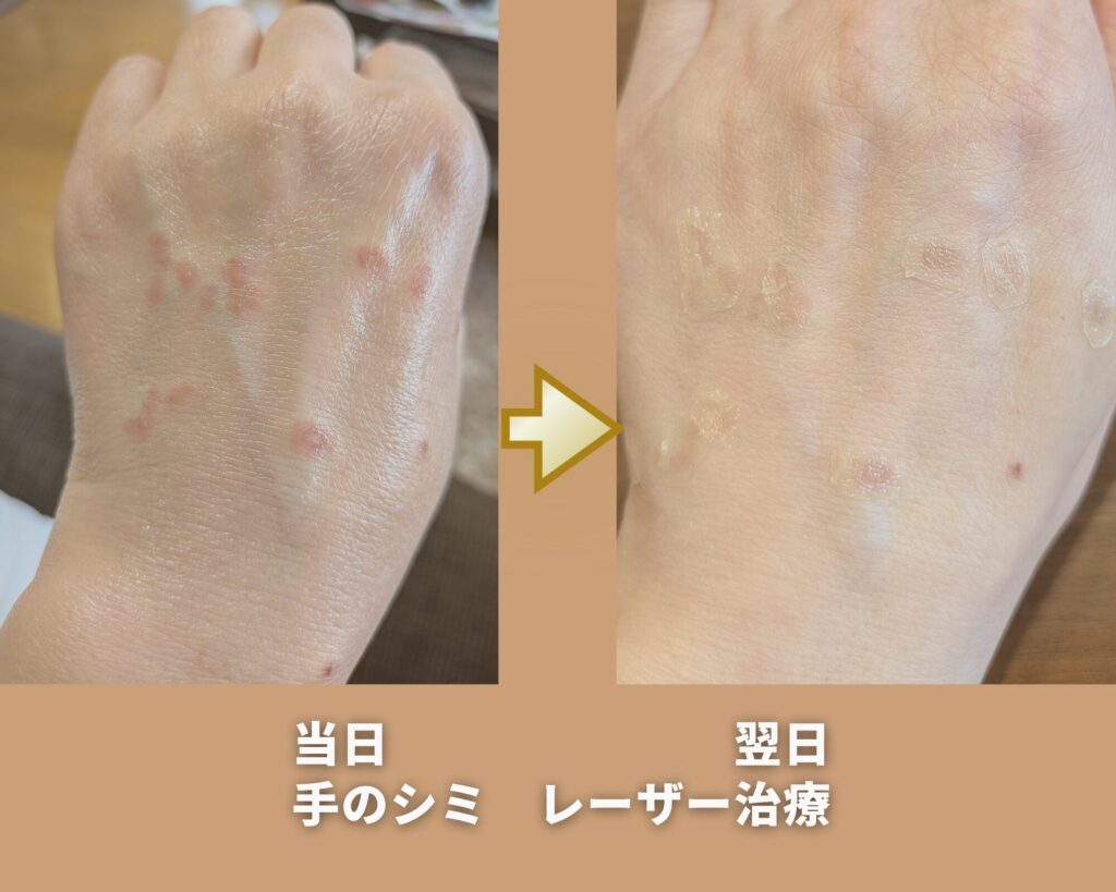 レーザーの種類や、先生の症例数、自身の体質でレーザー施術後の経過は一人一人、大きく違います。「あの人は、すぐにシミが消えた!私もすぐに取れるかも。」とはなりません。施術前に、皮膚科で先生の説明をよく聞いて、全体のイメージをしっかりもってから受ける事をお勧めします。